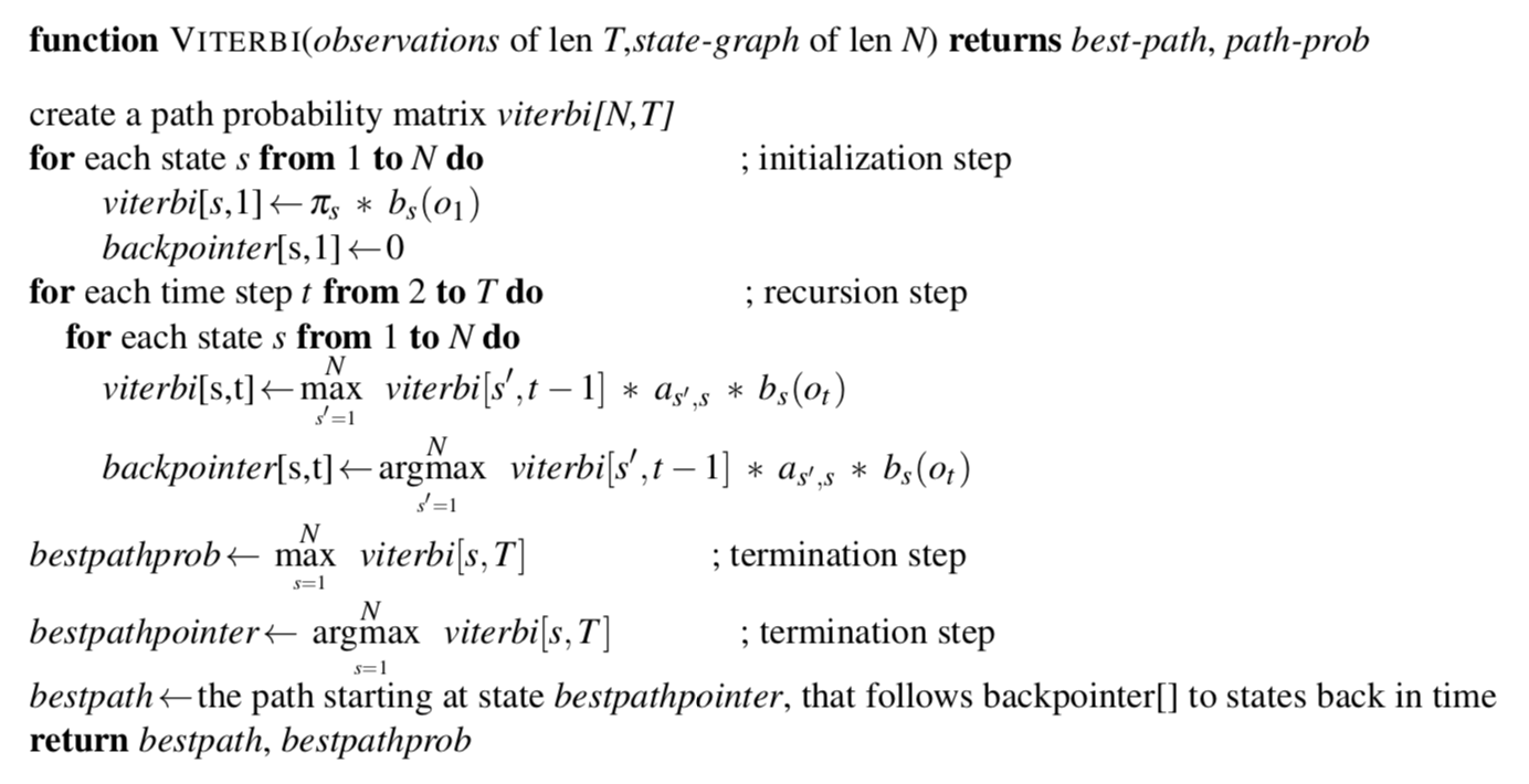 Given as input an HMM $\lambda = (A, B)$ and a sequence of observations , find the most probable sequence of states