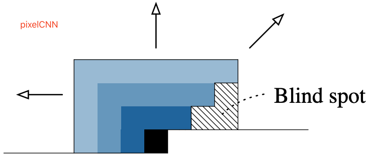 - advantages: deal with “blind spot” of the receptive field in PixelCNNs.