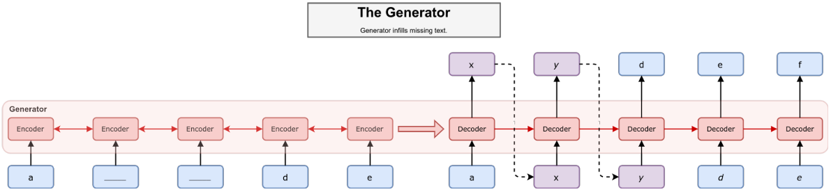| MaskGAN (ICLR’18) | ✔ | ✘ | ✘ | ✔ | ✘ | ✔ | LSTM (seq2seq) | LSTM (seq2seq) |