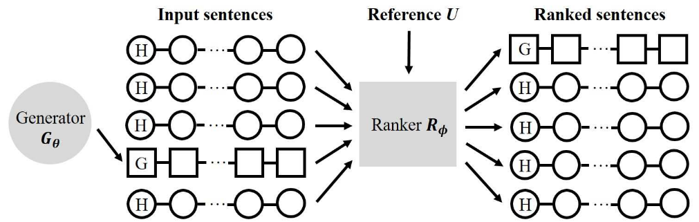 | RankGAN (NIPS’17) | ✔ | ✘ | ✔ | ✘ | ✘ | ✔ | LSTM | CNN |