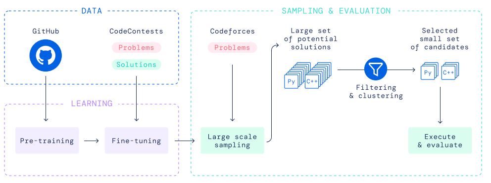| AlphaCode | DeepMind | 41B / 9B | ✔️ | - | - | SentencePiece | enc-dec | 12 | 715.1 GB after filtering. | ||