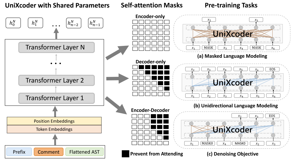 UniXCoder[12] uses a UniLM structure for code pre-training. It uses three objectives: